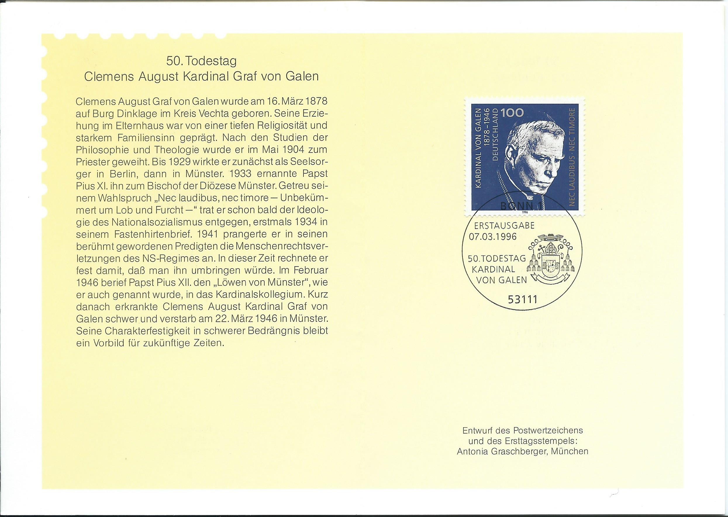 Und aus 1996 noch wieder anders, 50. Todestag Kardinal von Galen: