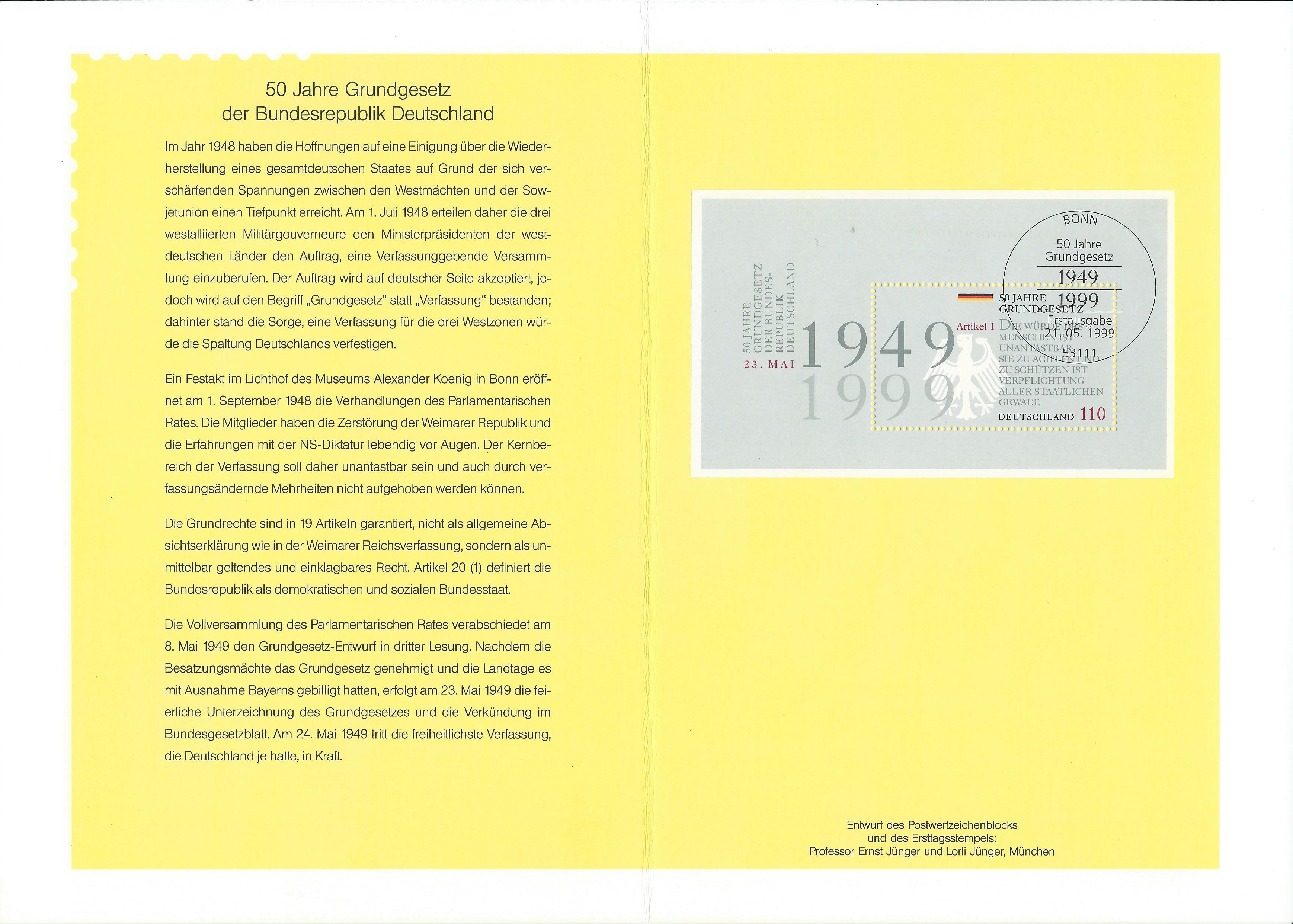 Ich mache hier mit meinen Beispielen noch kurz weiter. Als nächstes eine DIN A5 Klappkarte von der Blockausgabe 50 Jahre Grundgesetz: