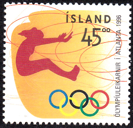 Diese Marke aus Island (MiNr 852) zu den Olympischen Sommerspielen 1996 in Atlanta zeigt eine Weitspringerin.