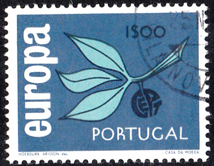 In Portugal erschienen die Europamarken 1965 am 27. September 1965. Hier die Marke zu 1,00 Escudo mit dem Gemeinschaftsmotiv "Zweig mit aus den Buchstaben „CEPT“ gebildeter Frucht ", die in einer Auflage von 9 000 000 Stück erschien.