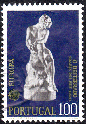In Portugal erschienen die Europamarken 1974 am 29. April 1974. Hier die Marke zu 1,00 Escudo zu dem Gemeinschaftsthema "Skulpturen", die in einer Auflage von 9 000 000 Stück erschien. Die Marken zeigen die Statue "O Desterrado (Der Verbannte)" von Antonio Soares dos Reis (1847-1889).