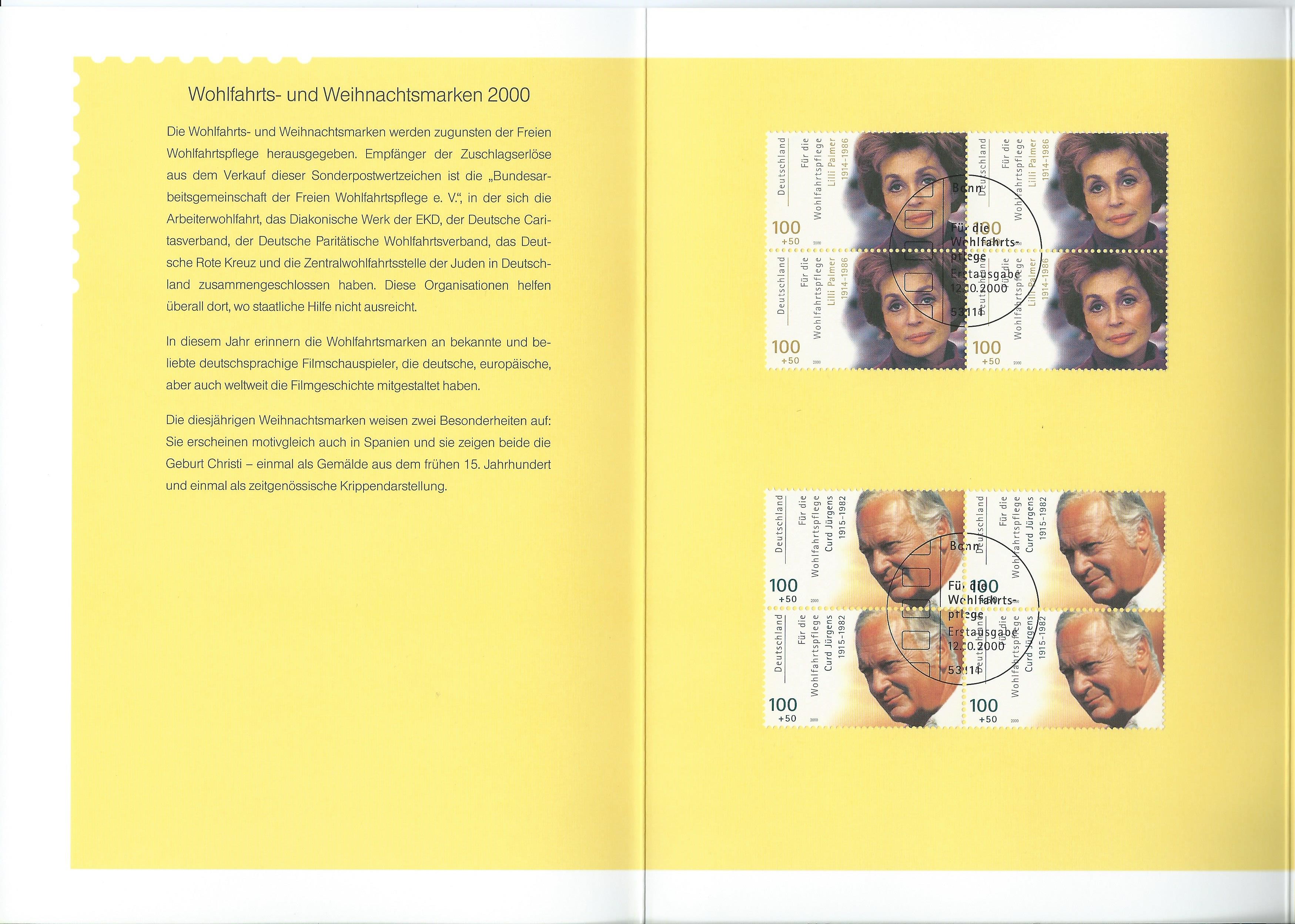 Wie heisst es so schön: Das Beste kommt zum Schluss ;) Eine grosse Klappkarte, wieder einzeln gescannt, zur Ausgabe Wohlfahrt 2000 mit Motiven Deutscher Schauspieler. Das besondere hieran sind die verklebten 4-er-Blöcke, so etwas habe ich zuvor noch nie gesehen.