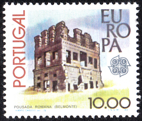 In Portugal erschienen am 2. Mai 1978 die Europamarken 1978 zum Gemeinschaftsthema "Baudenkmäler". Hier die Marke zu 10,00 Escudo mit einer Abbildung der Villa Centum Cellas bei Belmonte. Die Auflage betrug 4 000 000 Stück.