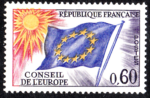 Hier ein postfrisches Exemplar der Dienstmarke Europarat MiNr. 12 der Wertstufe zu 0,60 Francs: