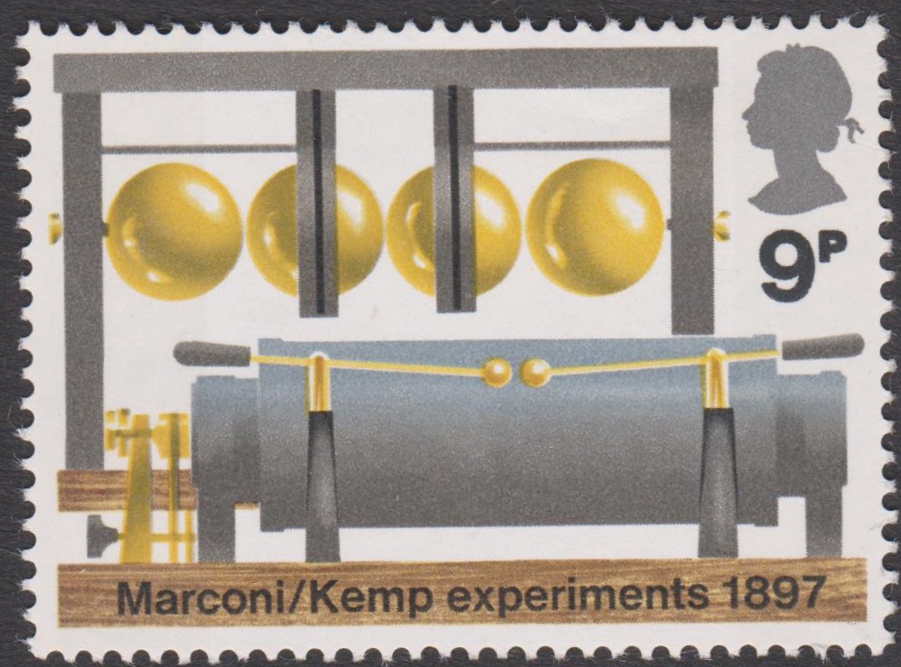 Großbritannien MiNr. 605 zeigt einen Marconi-Funksender von 1897: