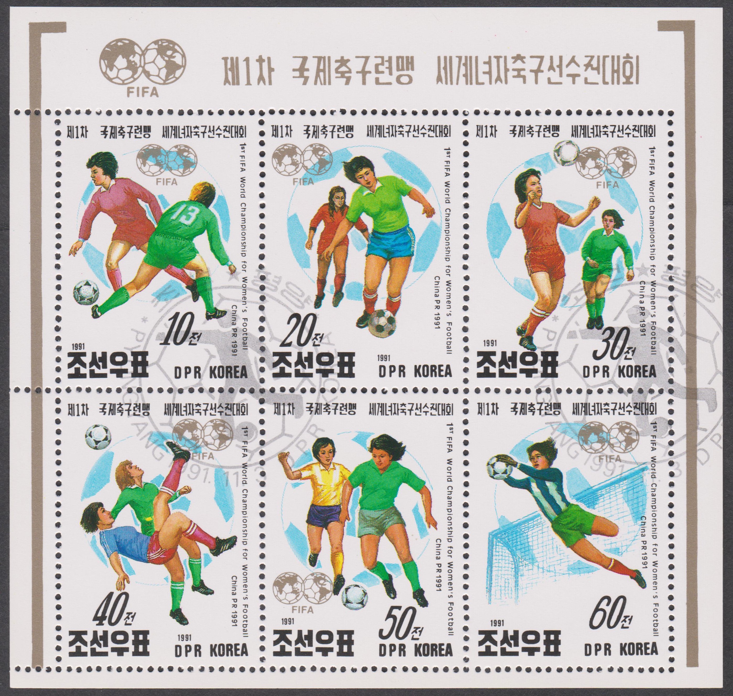 In Nord-Korea ist zu der 1.WM im Frauenfußball eine Serie mit insgesamt sechs Marken erschienen.