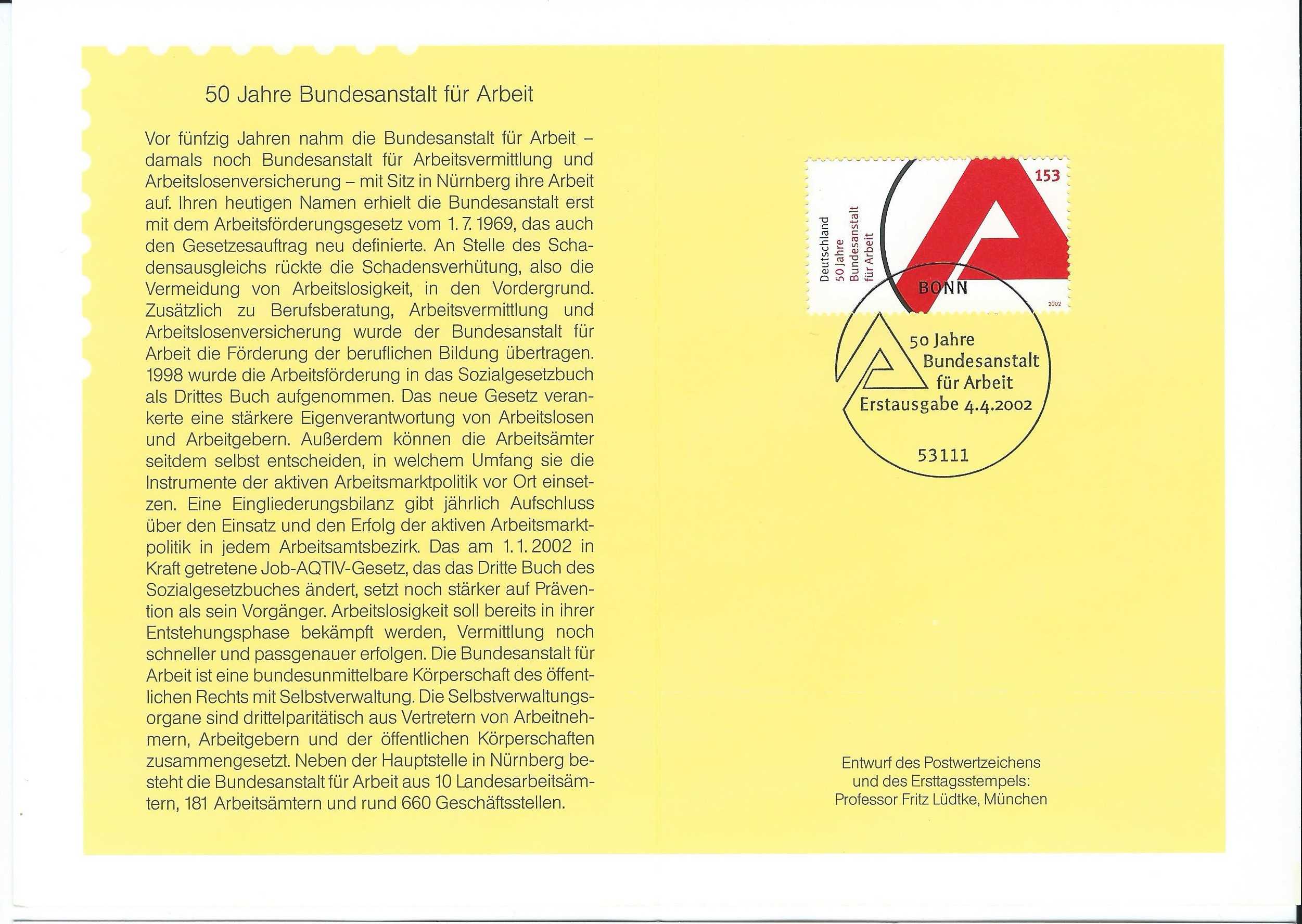 ...und die für heute letzte Karte: Mi.Nr. 2249 50 Jahre Bundesanstalt für Arbeit vom 4.4.2002: