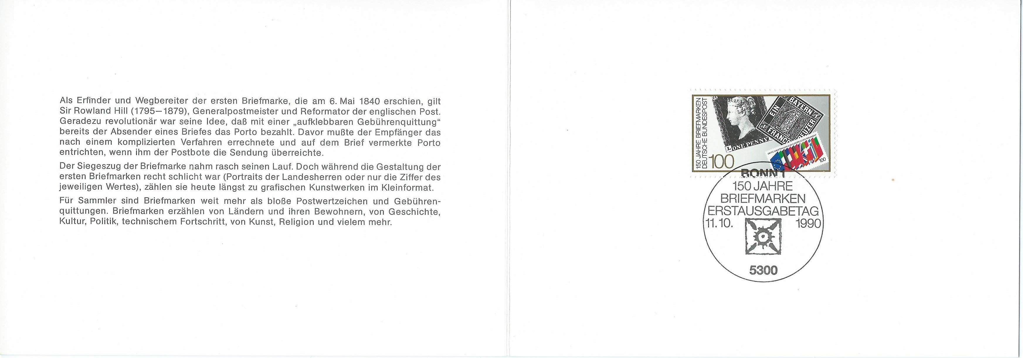 Hier noch eine Karte vom Postdienst: 150 Jahre Briefmarken vom 11.10.1990, Mi.Nr. 1479