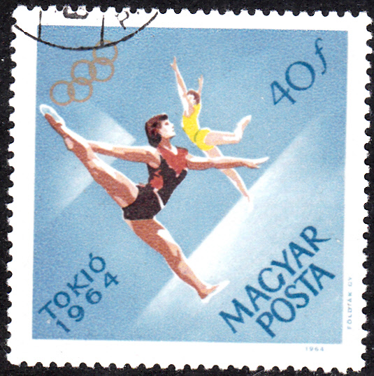 In Ungarn erschien am 12.6.1964 eine Markenserie zu den Olympischen Sommerspielen 1964 in Tokio. Hier eine Marke zu 30 Filler (MiNr 2031 A) mit der Abbildung zweier Fechter beim Kampf.