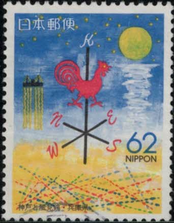 Japan Präfekturmarke  Hyogo Wetterhahn des Thomsonhauses, Blick über nächtliches Kobe 1991 - 207501042016.jpg