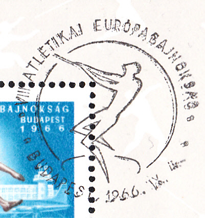 Im Sonderstempel auf diesem Block aus Ungarn zu den 8. Europäischen Leichtathletik-Meisterschaften in Budapest wird ein stilisierter Hammerwerfer gezeigt.