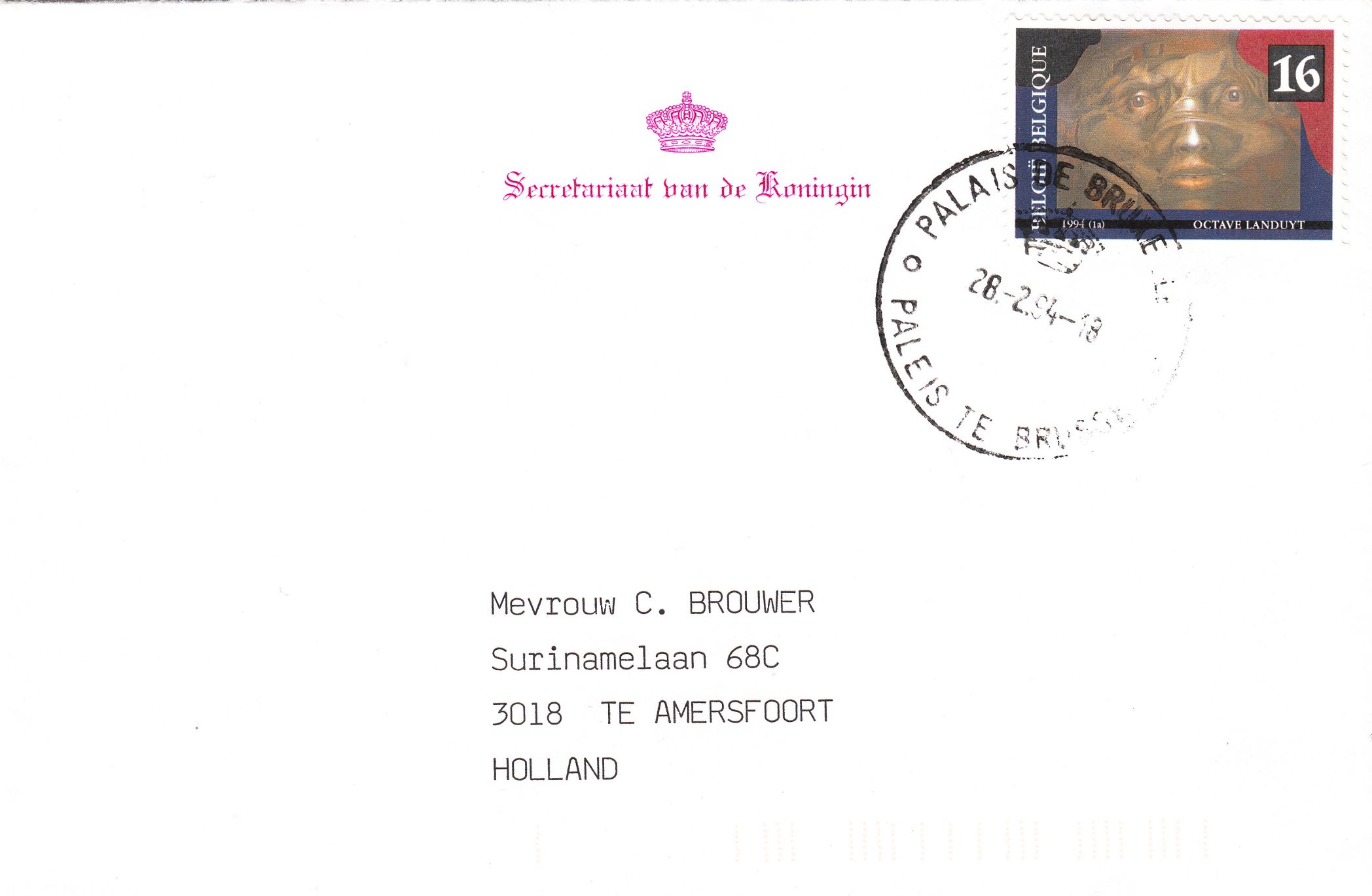 Die Dienststellen des Königshauses in Belgien geben ihre Post im "PALAIS DE BRUXELLES PALEIS TE BRUSSEL" auf, hier ein Brief vom 23.09.1977 mit Absender "Kabinet van de Koning":