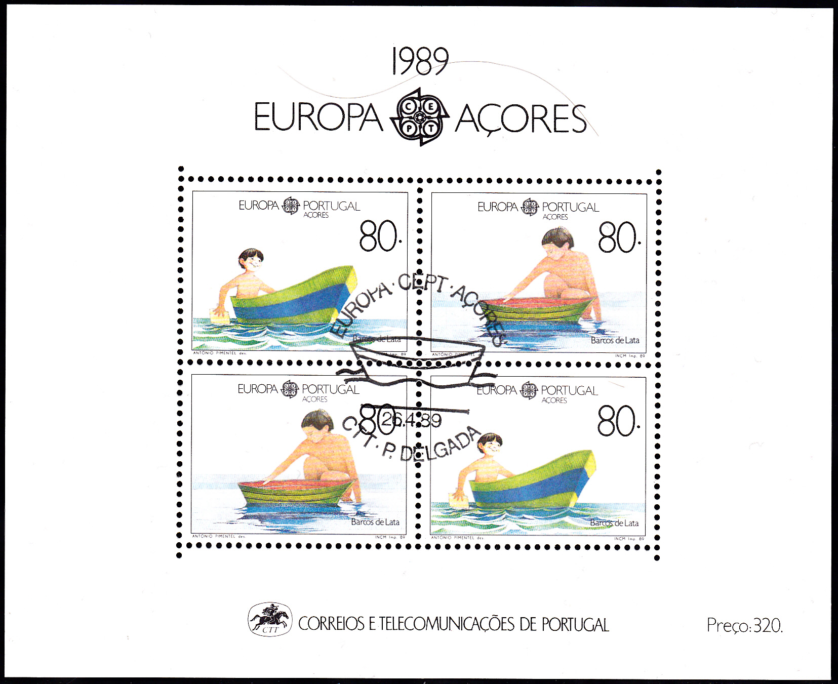 Die Europamarke aus Portugal Azoren (MiNr 401) zu 80,00 Escudo mit der Abbildung eines Jungen in einem Boot erschien zusammen mit einer zweiten Marke zu 80,00 (MiNr 402) mit einem Junge der mit einem Boot spielt am 26.4.1989 auch in einem Block. Die Auflage des Blockes betrug 180 000 Stück.