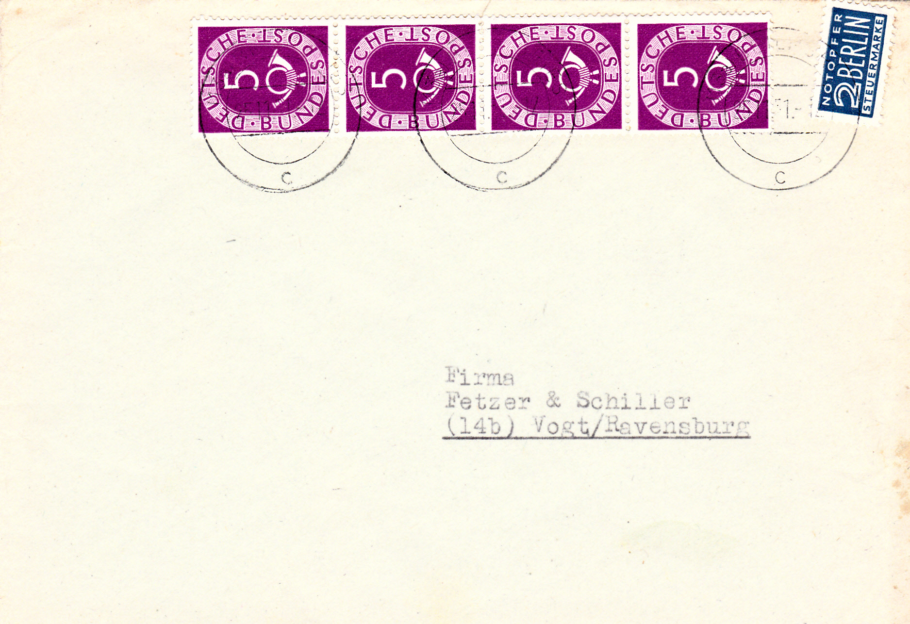 An sich nichts aufregendes, Wertstempel Posthorn 10 Pf, normal als Bedarfskarte gelaufen, Tagesstempel von Beuron vom 20.3.53. Gut, der Tagesstempel ist jetzt nicht der Standardstempel, sondern eher ein alter aus dem Deutschen Reich. Aber ob ich die Karte im Normalfall genommen hätte? Eher weniger. Doch wie so manchmal der Zufall mitspielt, 2 Belege weiter ist mir diese Karte ins Auge gefallen: