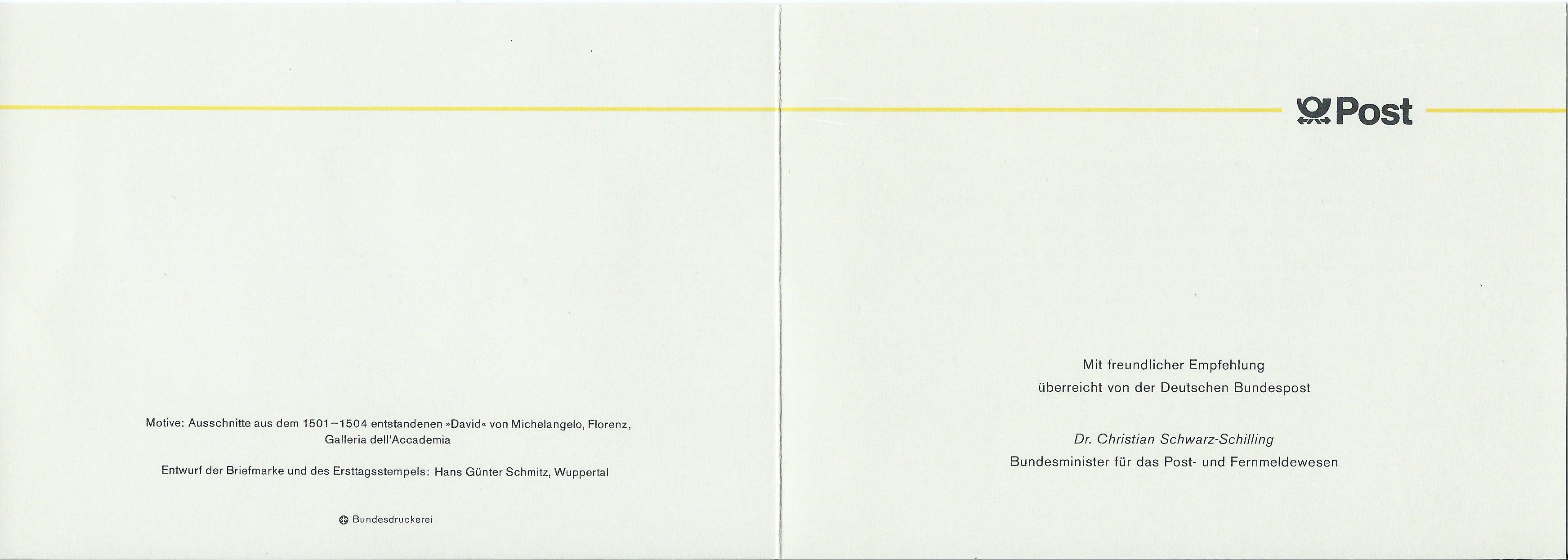 Dazu kann ich hier die bei der Ministerkarte der Wohlfahrtsmarken beigelegte Klappkarte mit den Weihnachtsmarken zeigen:. Diese Klappkarte hatte deshalb keinen weiteren Text und auch keine Unterschrift des Postministers.