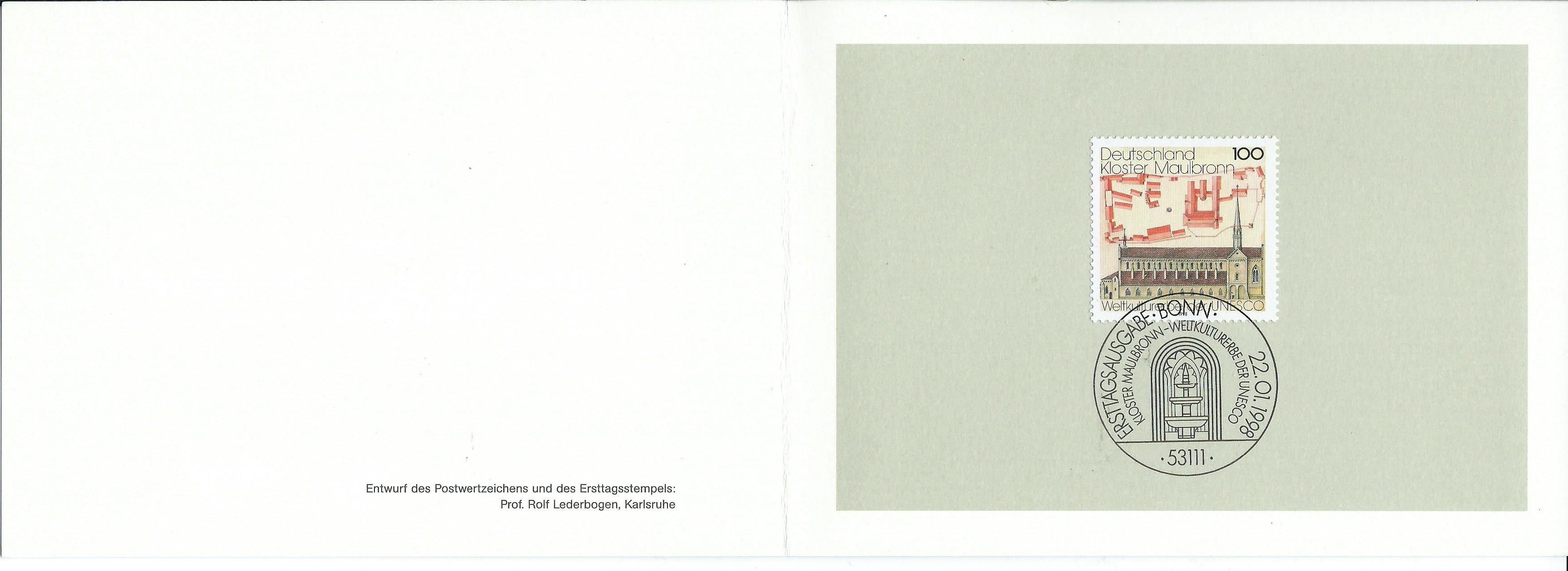 Kleiner Zeitspung nach 1998: Mi.Nr. 1966 UNESCO-Welterbe Kloster Maulbronn vom 22.1.86, Unterschrift von Theo Waigel als amtierender Finanzminister:
