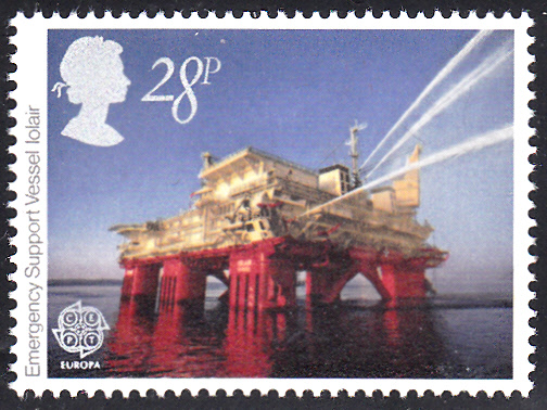 In Großbritannien erschienen die Europamarken 1983 am 25. Mai 1983 zum Gemeinschaftsthema "Große Werke des menschlichen Geistes". Hier die Marke zu 28 Pence, die die Löschinsel "Iolair" in der Nordsee zeigt. Die Marke erschien in einer Auflage von 7 988 900 Stück.