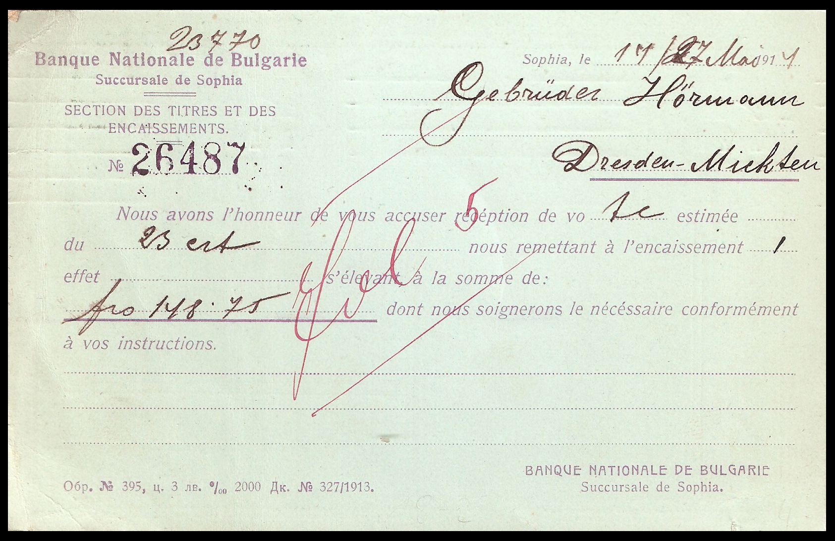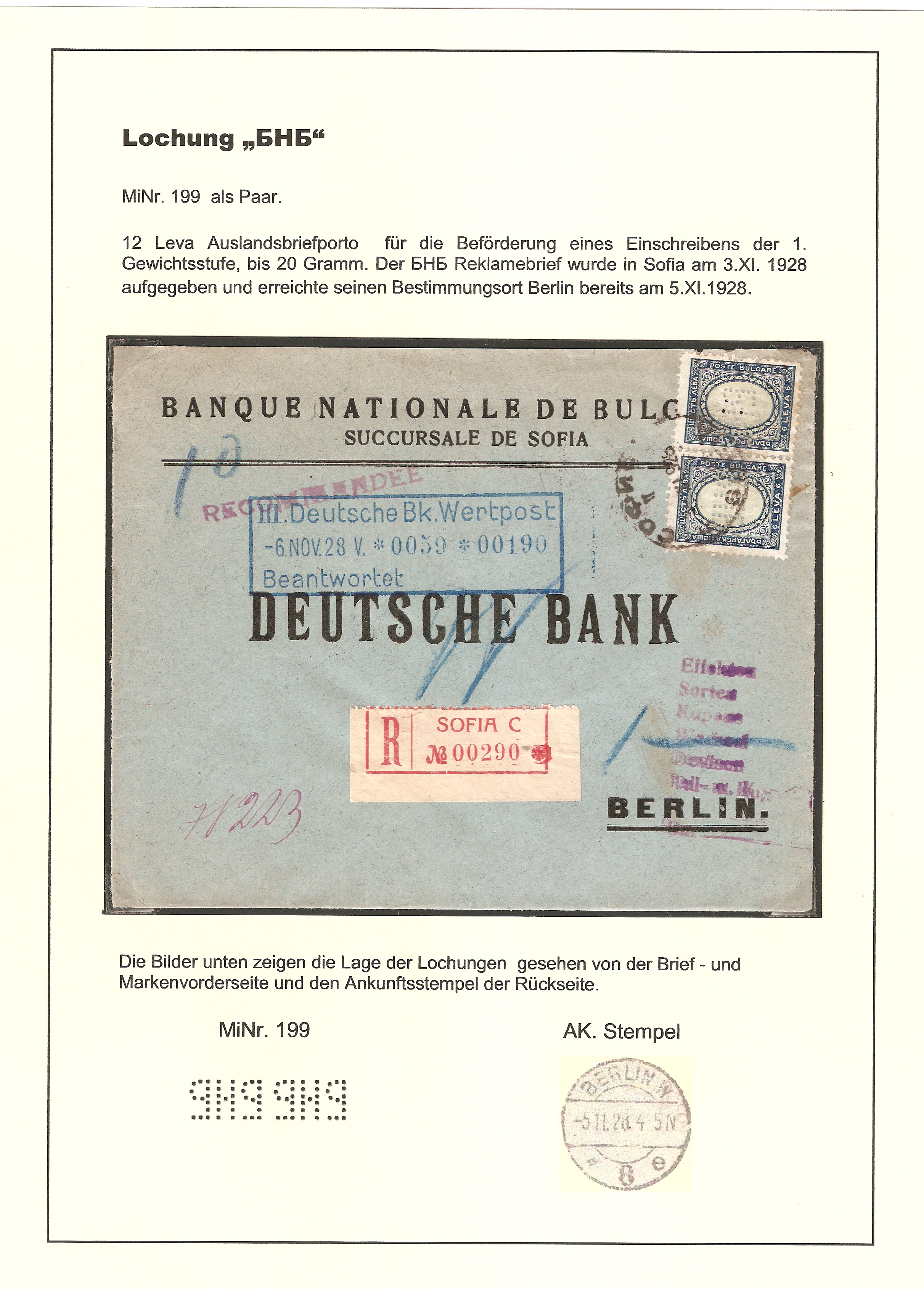 Bankbelegen hat den Vorteil, daß Ihr die recht schwierigen und unübersichtlichen bulgarischen Portostufen der jeweiligen Zeiten genau studieren könnt. Damals wie heute hatten die Banken nichts zu verschenken, demzufolge sind die allermeisten Belege portogerecht frankiert.