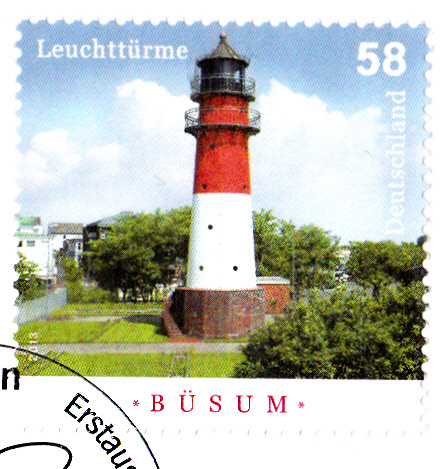 Und hier kommen wir gleich zu der zweiten Marke des Jahres 2013 (MiNr 3011) aus der Leuchtturmserie mit dem Leuchtturm Büsum. Der Leuchtturm Büsum ist ein Leuchtturm an der deutschen Nordseeküste in Schleswig-Holstein. Ein Vorgängerbau war ein 1875 errichtetes hölzernes Bauwerk mit einer Laterne, die hinaufgezogen werden musste. Der heutige Turm wurde in den Jahren 1912/1913 als Leit- und Orientierungsfeuer errichtet und besitzt eine Höhe von 21,4 Metern.