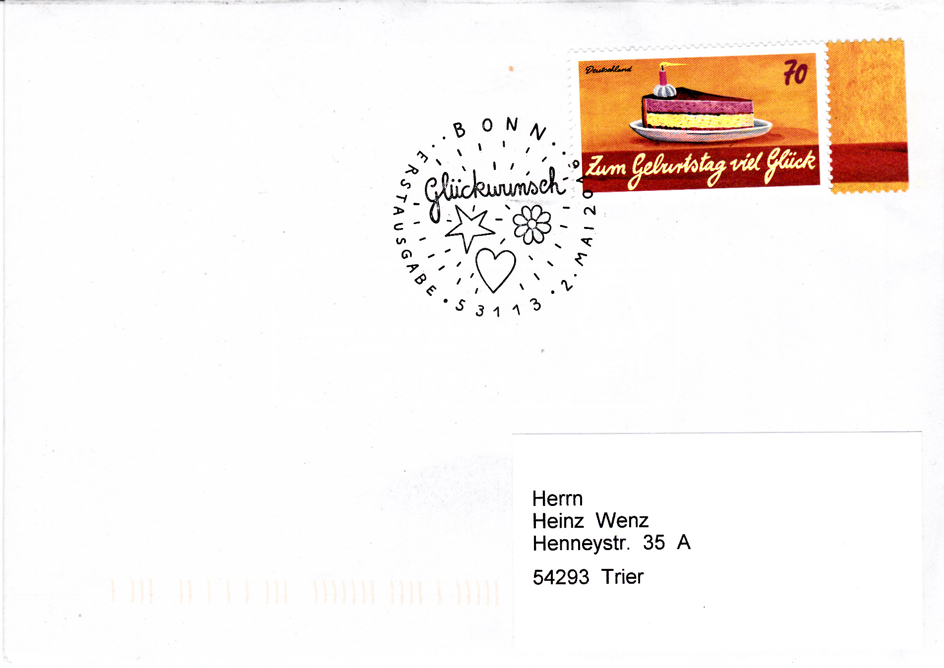 Heute ist bei der Deutschen Post diese Marke mit einem Stück einer Geburtstagstorte erschienen: