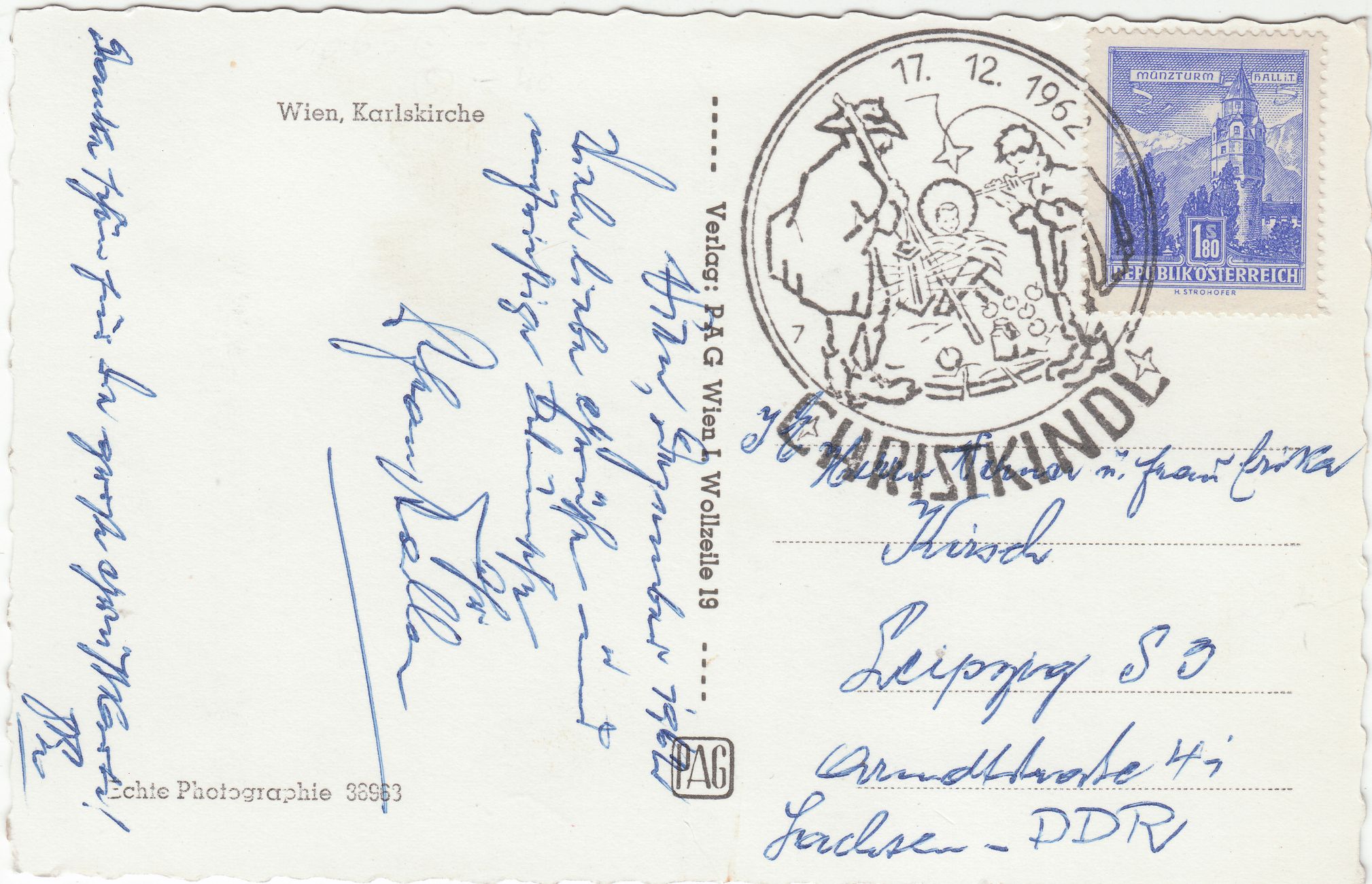 Hier der 1962 eingesetzte Sonderstempel CHRISTKINDL mit der Kennziffer "7", am 17.12.1962 gebraucht auf einer Postkarte in die DDR: