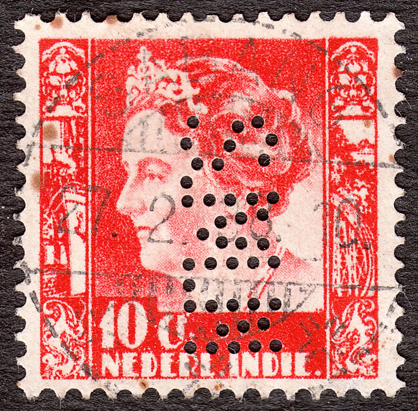Hier eine aus Kiloware gefischte Marke aus Niederländisch-Indien mit Perfin "S.M.N":