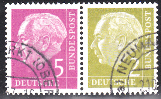 Gestempelter waagerechter Zusammendruck MiNr W 11 (5Pf+2Pf) aus Markenheftchenblatt MiNr H-Blatt 6 aus dem Markenheftchen MiNr 3.