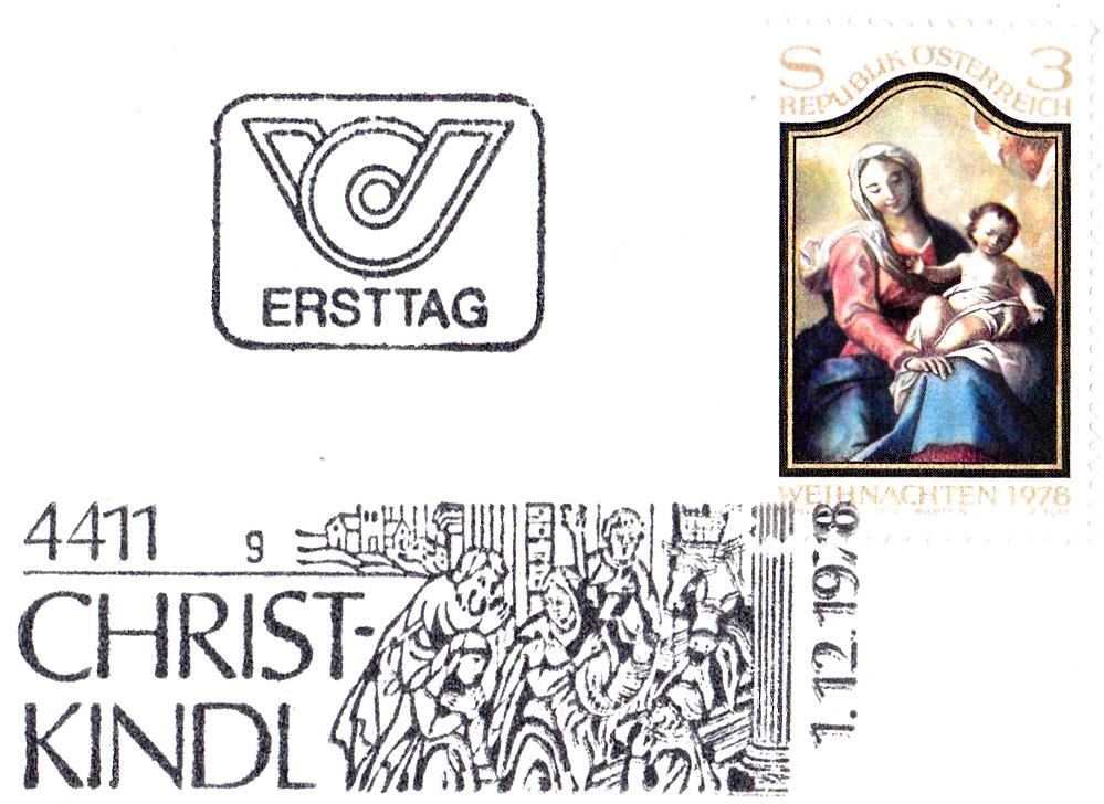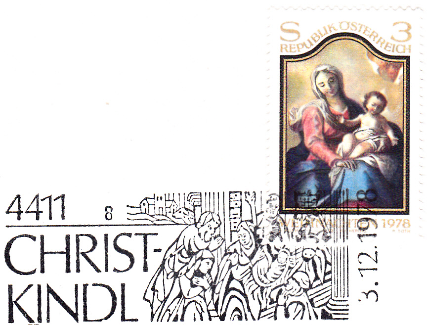 Hier diente der Sonderstempel Christkindl aus dem Jahr 1978 mit der Kennziffer "6" zur Entwertung der Weihnachtsmarke 1978 von Österreich: