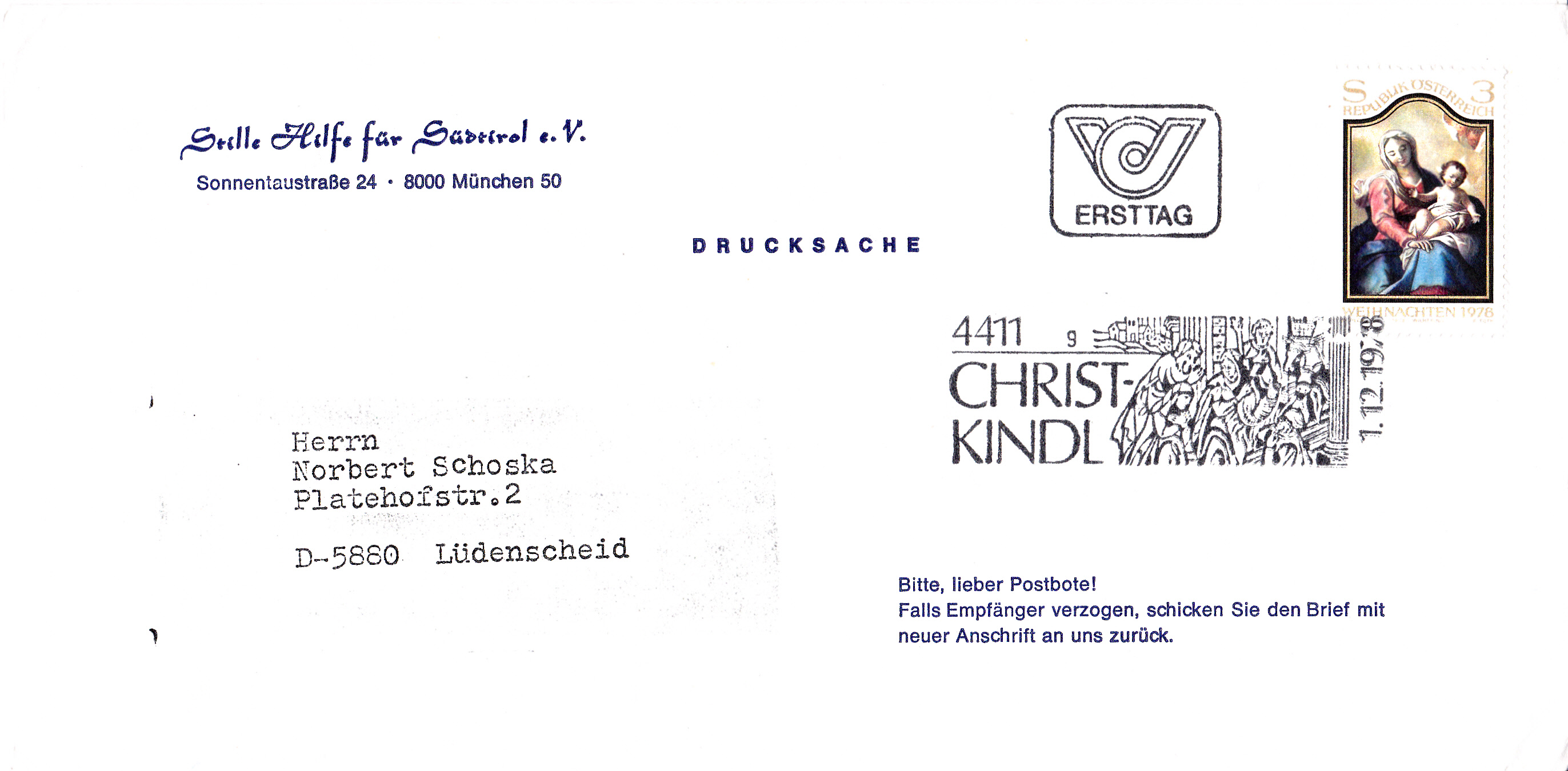 Hier folgt ein Sonderstempel Christkindl vom 1.12.1978 mit der Kennziffer "5".