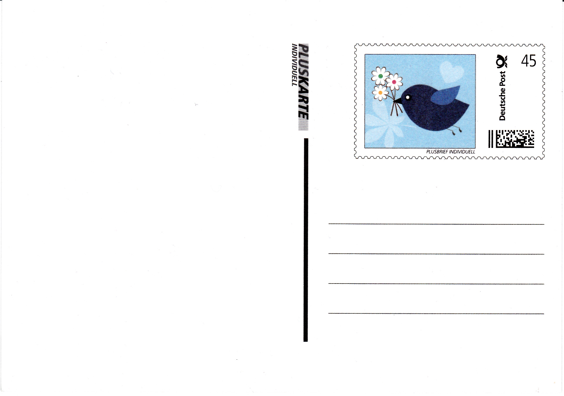 Diese Pluskarte individuell stammt aus einer Verkaufsverpackung mit drei Pluskarten mit "frühlingshaften Motiven", wie sie über Postagenturen zum Preis von 2,95 € verkauft werden bzw wurden.