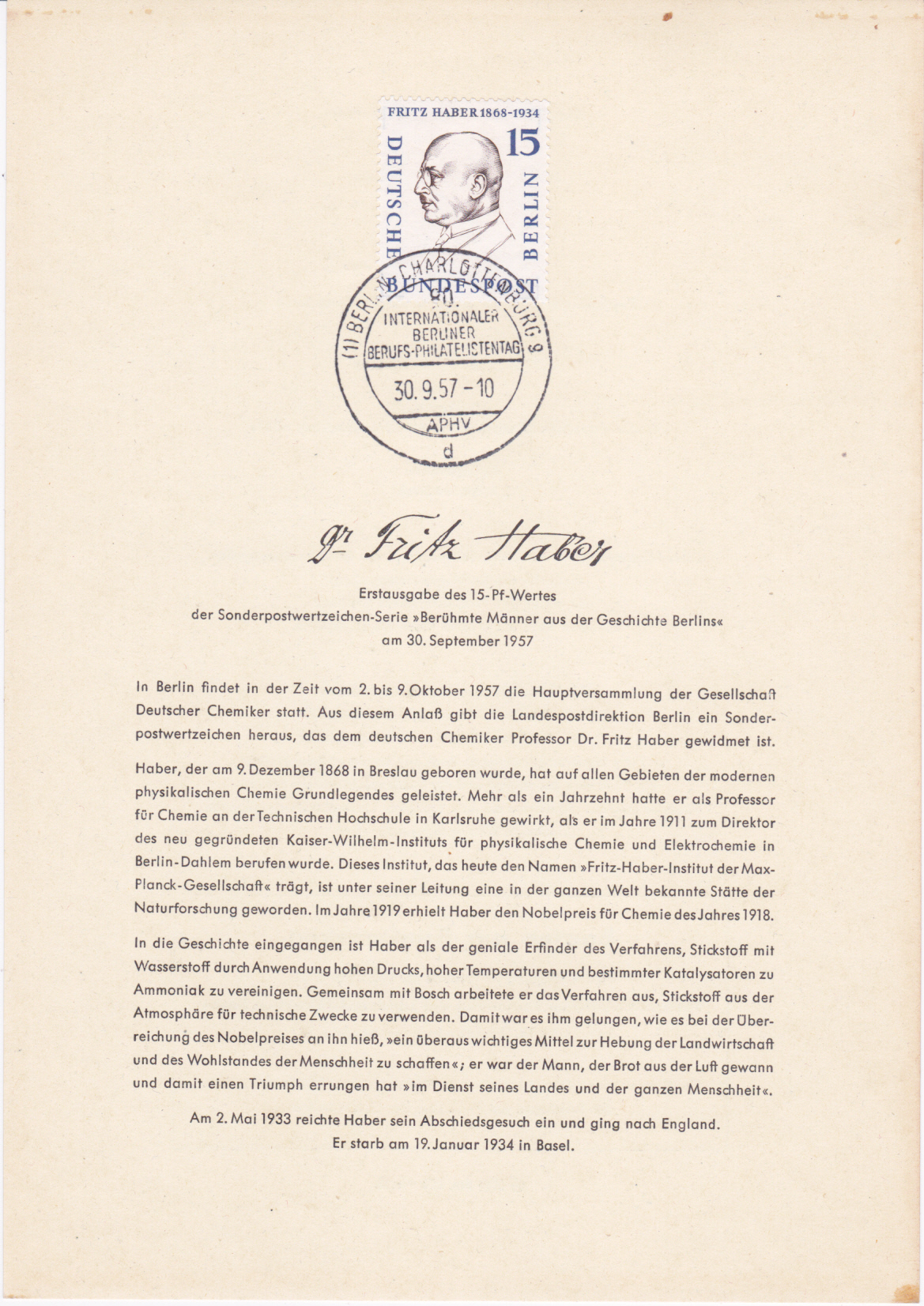 In Berlin ist 1957 in der Serie "Männer aus der Geschichte Berlins" auch eine Marke (MiNr 166) mit Fritz Haber erschienen.