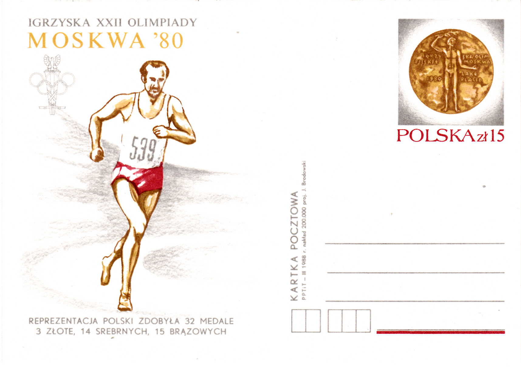 Ungebrauchte Ganzsache aus Polen mit der Abbildung eines Läufers. Die Ganzsache erinnert an die Medaillengewinne bei den Olympischen Spielen in Moskau.
