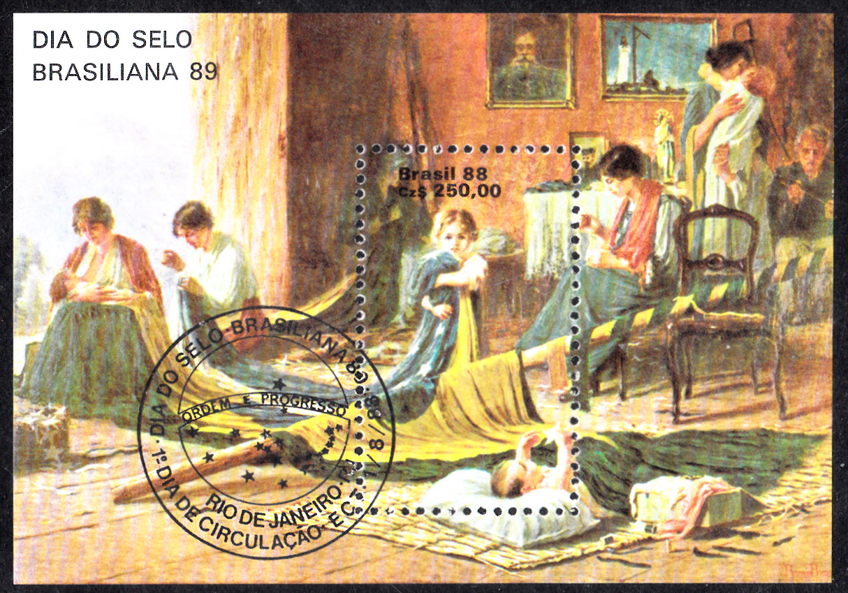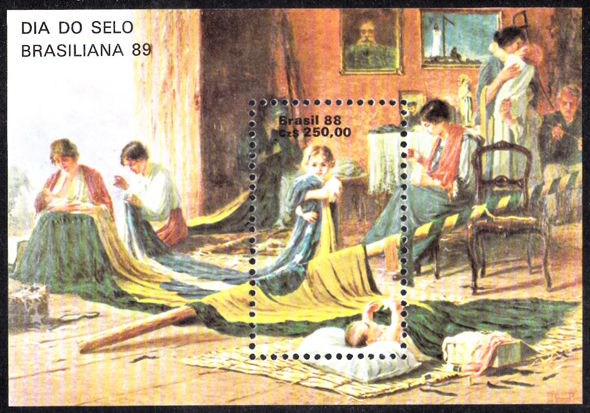 In Brasilien erschien zum Tag der Briefmarke 1988 und zur Briefmarkenausstellung BRASILIANA 89 dieser Block (MiNr Block 74) mit der Abbildung des Gemäldes "Das Vaterland" von Pedro Bruno (1888-1949).