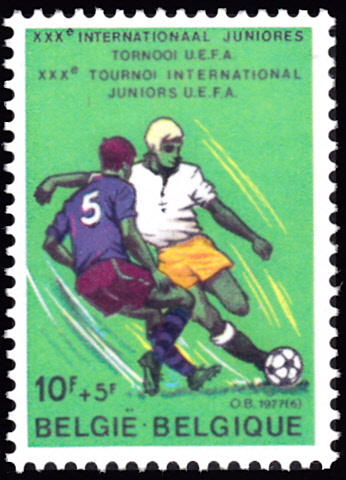 Belgien war 1977 Gastgeber für das UEFA-Turnier der Junioren. Auch dazu erschien in Belgien eine Marke (MiNr 1903). Sie zeigt eine Spielszene beim Fußball.