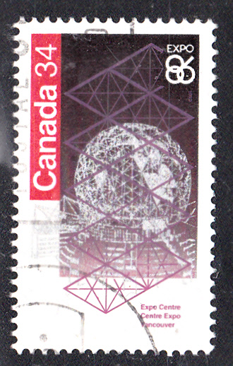 In Kanada erschien zu der Expo 86 in einer Serie diese Marke (MiNr. 988) mit der Abbildung des EXPO-Zentrums.