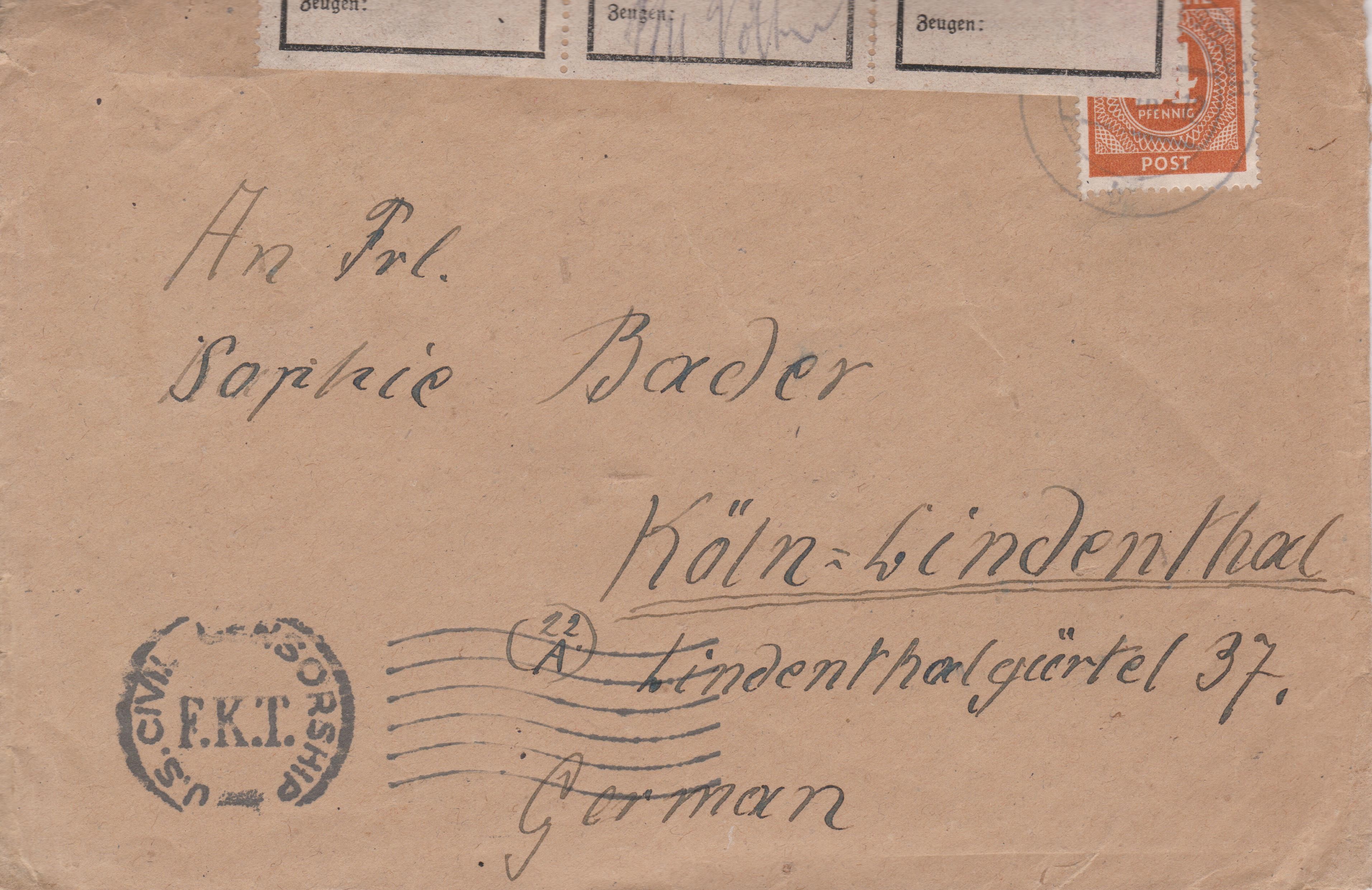 Rückseitig wurde ein Stempel abgeschlagen "Empfänger nicht ermittelt Postamt Köln 1" und der Brief ging an den Absender "Zurück".
