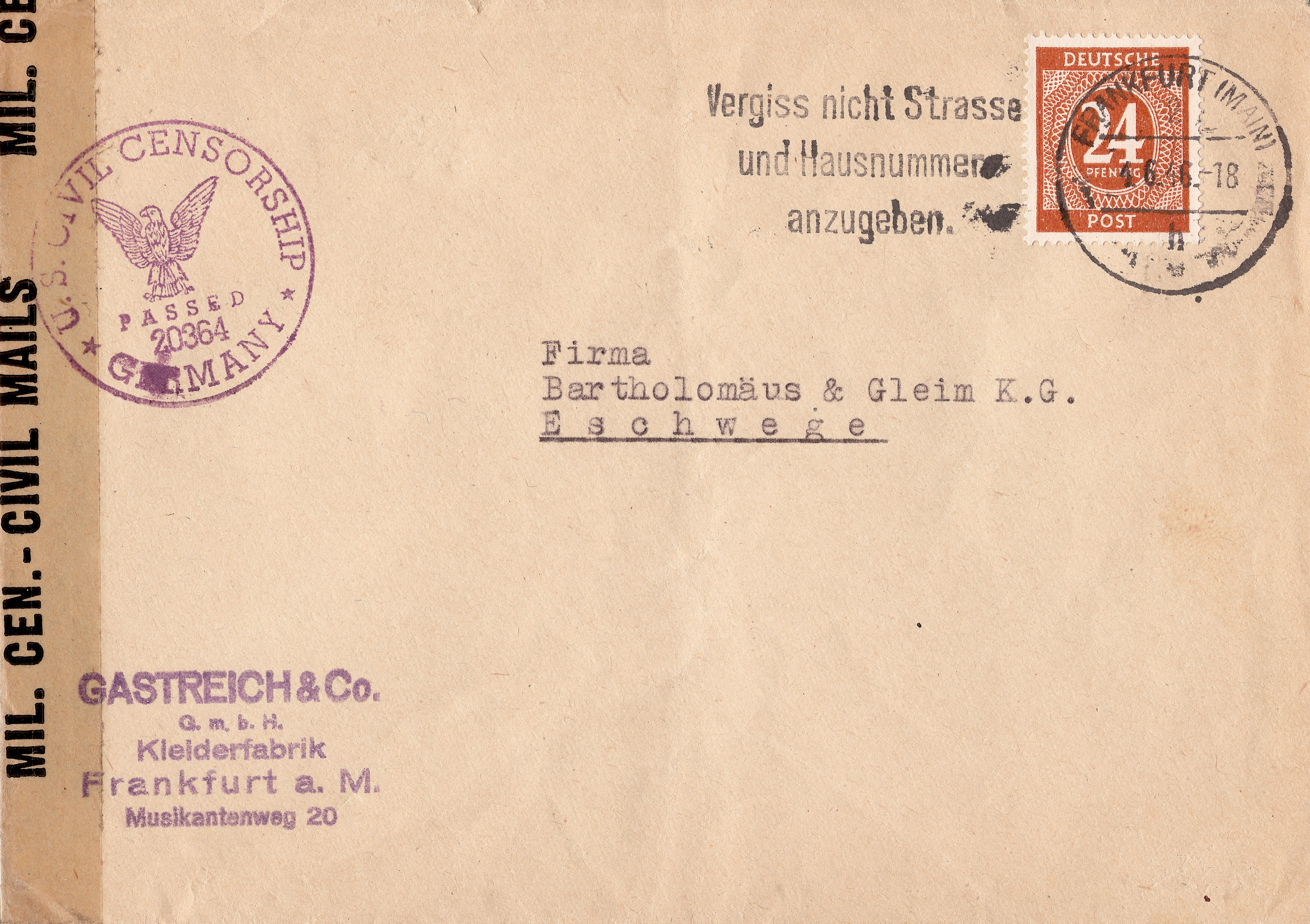 Der Brief wurde rückseitig mit einem handschriftlichen Vermerk "verzogen nach Köln" versehen und nach Köln weitergeleitet.