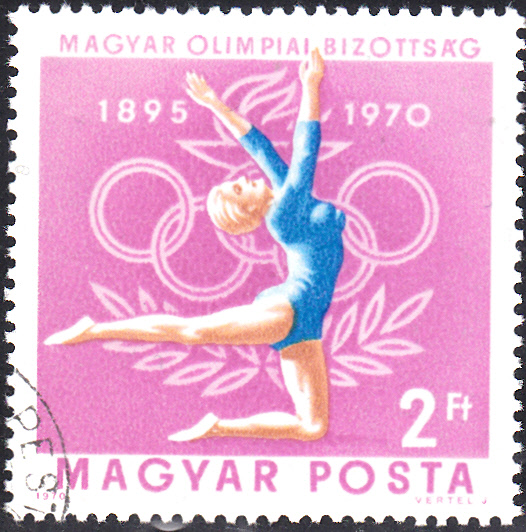 Diese Marke aus Ungarn (MiNr 2090 A) würdigt auch den Gewinn der Bronzemedaille durch Katalin Makray bei den Olympischen Spielen 1964 (hintere Turnerin).