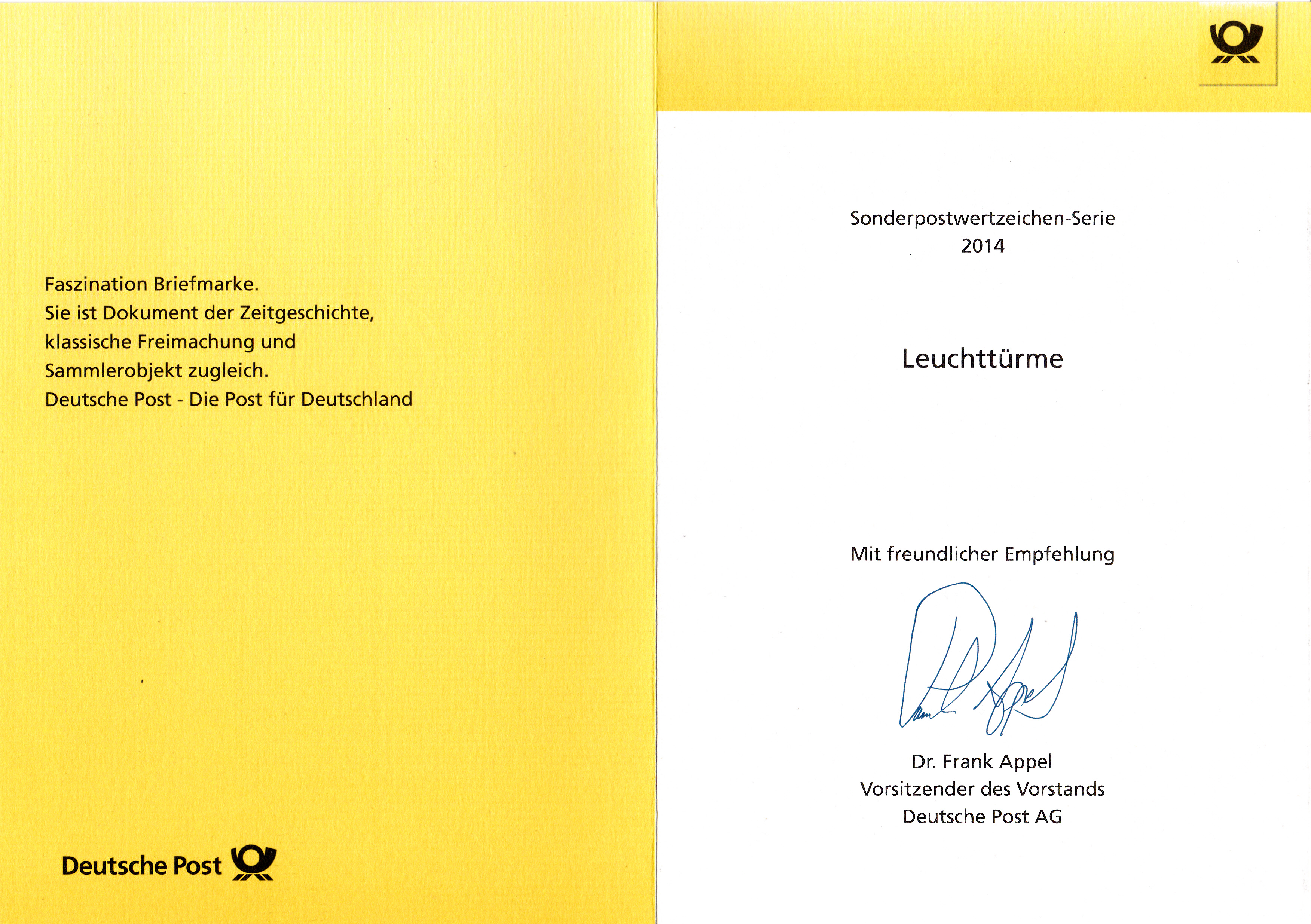 Hier auch die Klappkarte des Vorsitzenden des Vorstandes der Deutschen Post AG mit diesen beiden Marken: