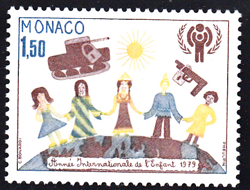 Und die Kinderzeichnung auf dieser Marke (MiNr 1373) aus Monaco zum Internationalen Jahr des Kindes heißt "Der Friede in der Welt".