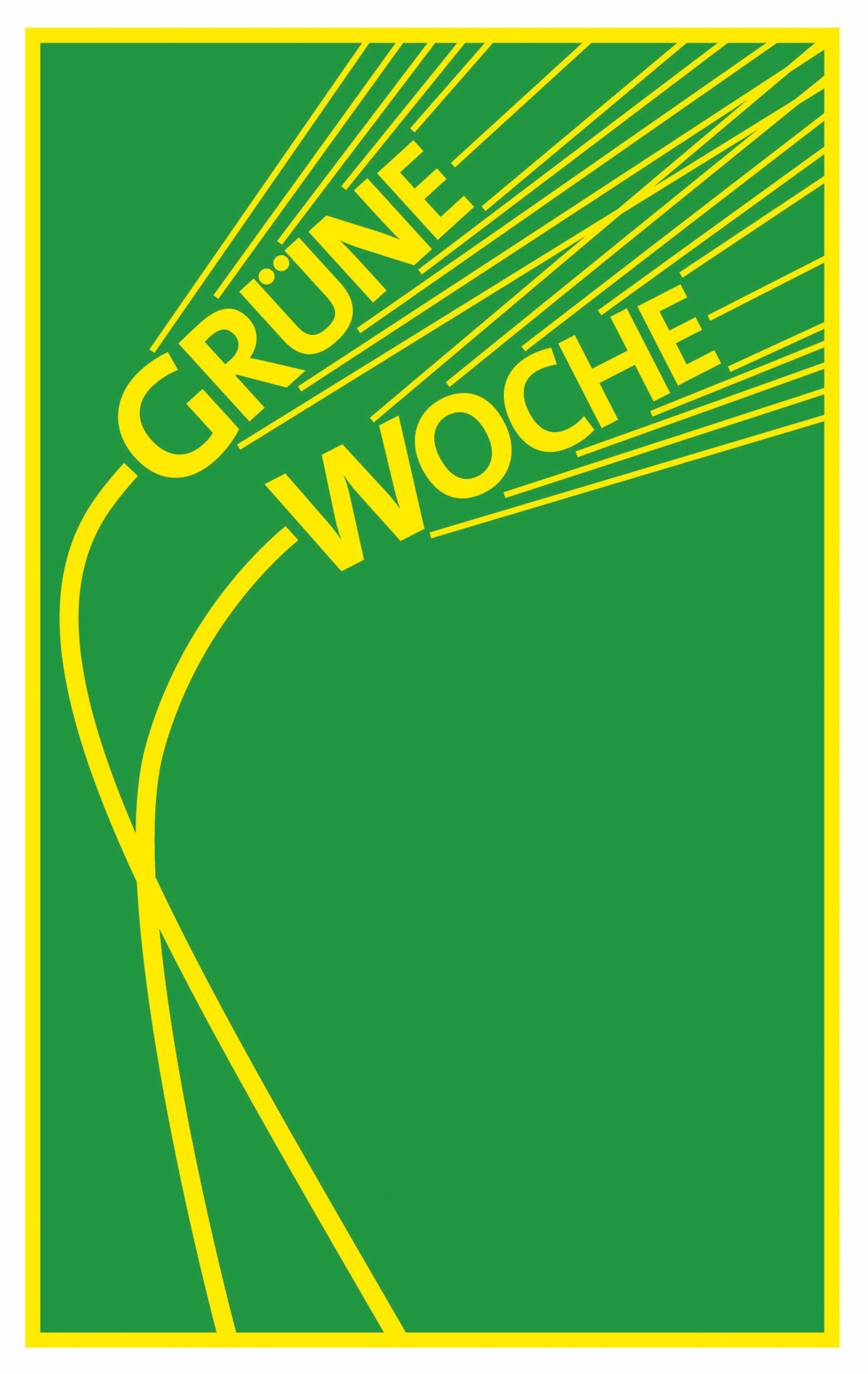 Das Logo der Grünen Woche, zwei stilisierte Gerstenhalme, deren Ähren von den Wörtern "Grüne Woche" gebildet werden, hat Wilhelm Hölter im Jahr 1935 entworfen: