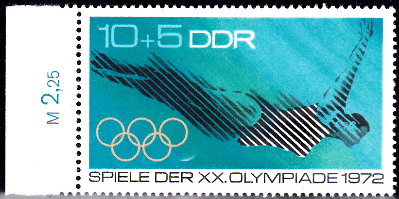 Die Marke zu 10+5Pf (MiNr 1754) zeigt eine Turmspringerin.