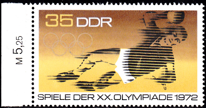 Auch in der DDR ist eine Serie zu den Spielen in München erschienen. Hier die erste Marke (MiNr 1753) mit einer modernen Darstellung zum Ringen.