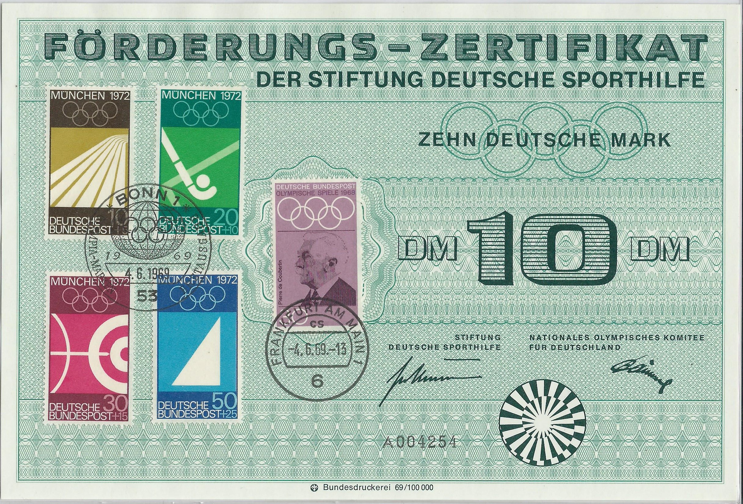 Diese Förderungs-Zertifikate gab seinerzeit die Stiftung Deutsche Sporthilfe heraus, um Spendengelder für die Stiftung zu erhalten. Weitere Erläuterungen sind auf der Rückseite zu finden: