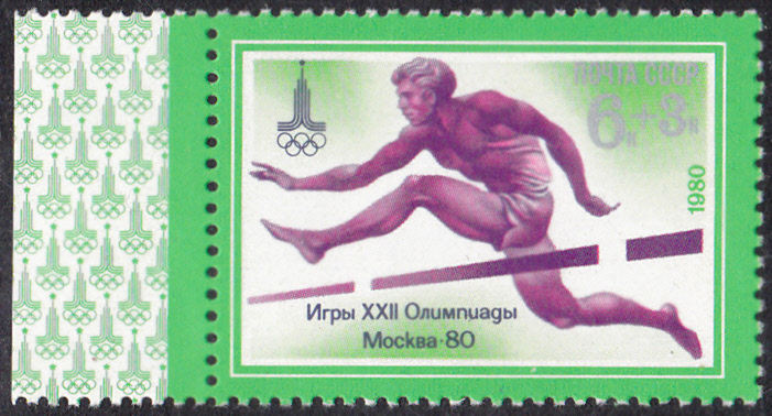 Di Marke zu 6+3 Kopeken (MiNr 4922) zeigt einen Hürdenläufer.