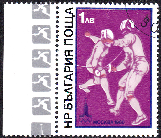Und auf dieser Marke (MiNr 2858) sollen laut Michel Katalog zwei Degenfechter zu sehen sein. Ich selbst kann den Unterschied auf den Abbildungen nicht erkennen.