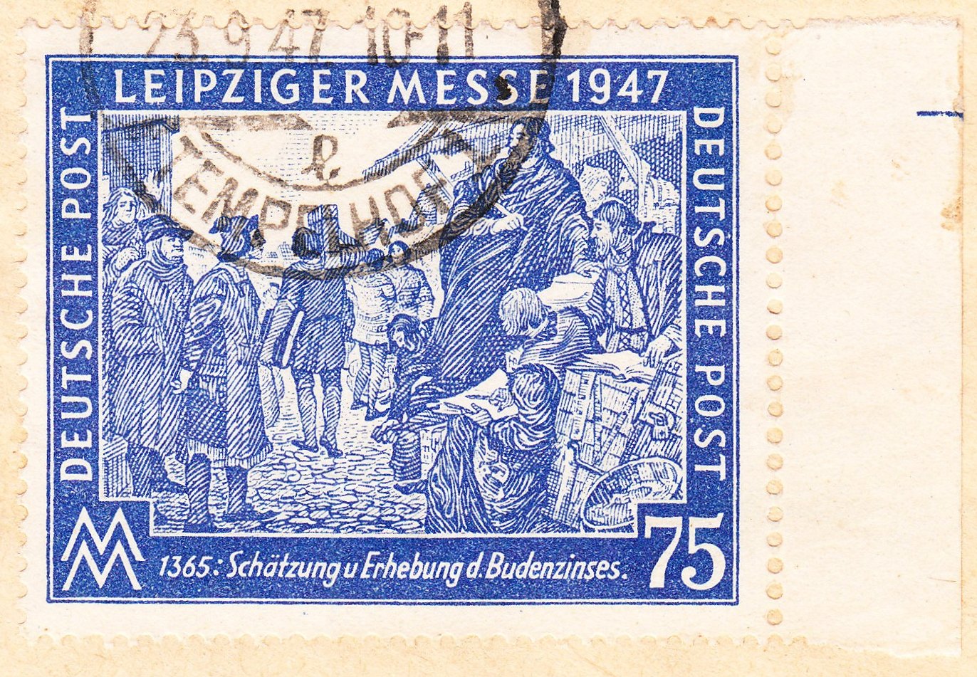 Als Frankatur für Briefe ins Ausland war die Portostufe 75 Pf gültig gewesen bis zum 14.09.1947. Ab dem 15.09.1947 hätten dann eigentlich 50 Pf als Porto ausgereicht! Vermutlich hatte sich der Absender über diese erfolgte Portosenkung noch nicht informiert und verklebte daher am 23.09.1947 noch immer 75 Pf.