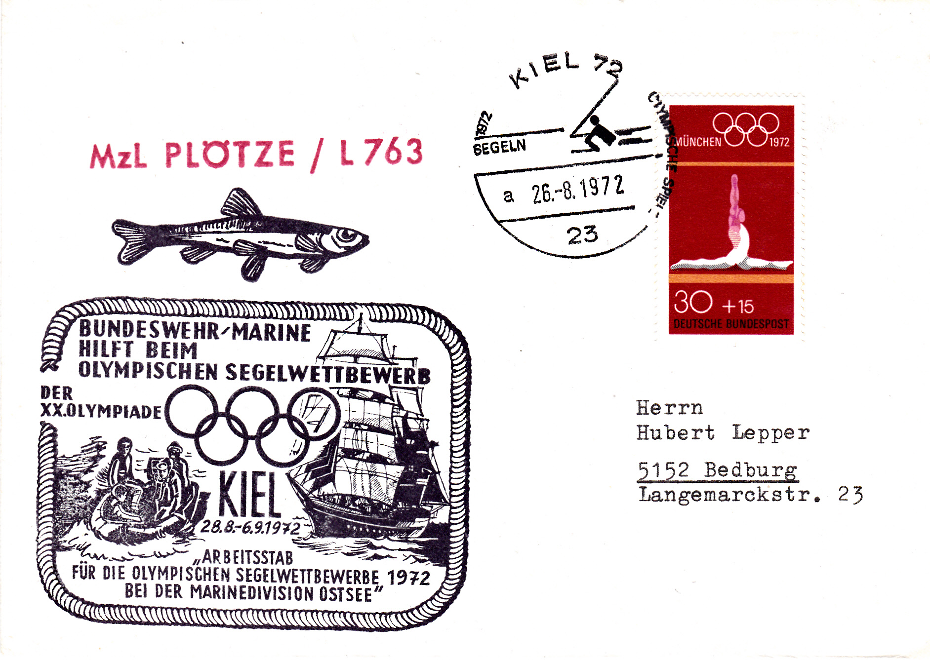 Diese Postkarte als Drucksache mit Sonderstempel "Großseglertreffen" vom 3.9.1972 und einem Stempel der "Alexandra" dokumentiert deren Teilnahme als Begleitschiff bei den Segelregatten.