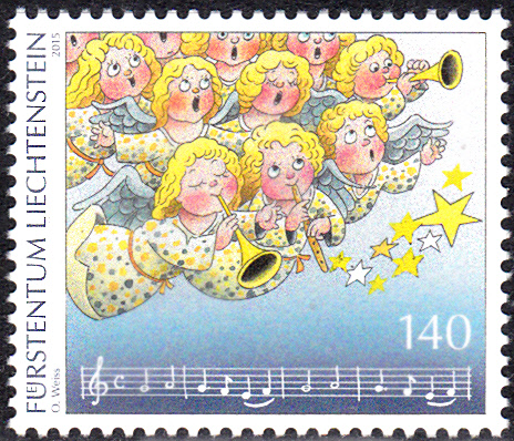 Die Weihnachtsmarken 2015 erschienen in Liechtenstein im Jahre 2015 zum Thema "Weihnachtslieder". Hier die Marke zu 85 Rappen (MiNr 1785) mit einer Darstellung zum Weihnachtslied "Es ist ein Ros entsprungen"