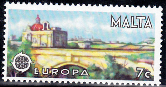 Die Europamarken 1977 zum Gemeinschaftsthema "Landschaften" erschienen in Malta am 5. Juli 1977. Hier Marke zu 7 Cent (MiNr 554) mit der Abbildung "Ta' l-Ipserenza". Die Auflage betrug 1 800 662 Stück.